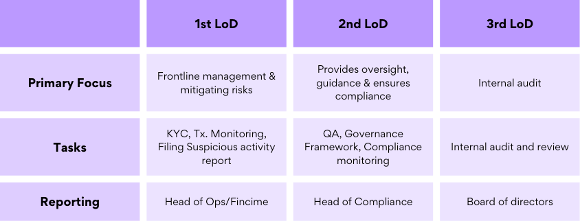 Broadly speaking, compliance within financial services is divided into 3 lines of defence