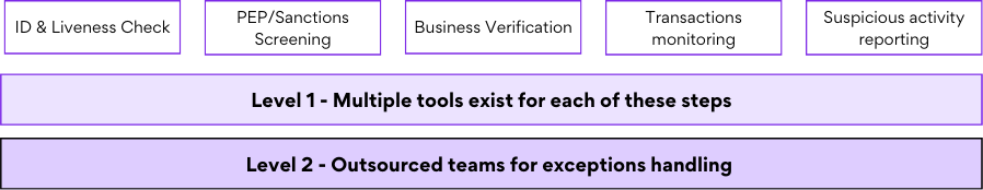 The argument is very simple for businesses to replace repetitive, low impact, fairly standard jobs with AI which is cheaper and possibly more accurate than outsourced labour. Because of regulatory reasons we still need to have human oversight (1st line of defence) but a lot of the actual “work” will be done by AI agents moving forward instead of human “agents”. Early signs are positive from two relatively young businesses from Y combinator - Greenlite and Accend. There is an argument that current KYC or Transaction monitoring players are well suited to build AI agents for exception handling as they already have access to customer data and are integrated into the financial institution.